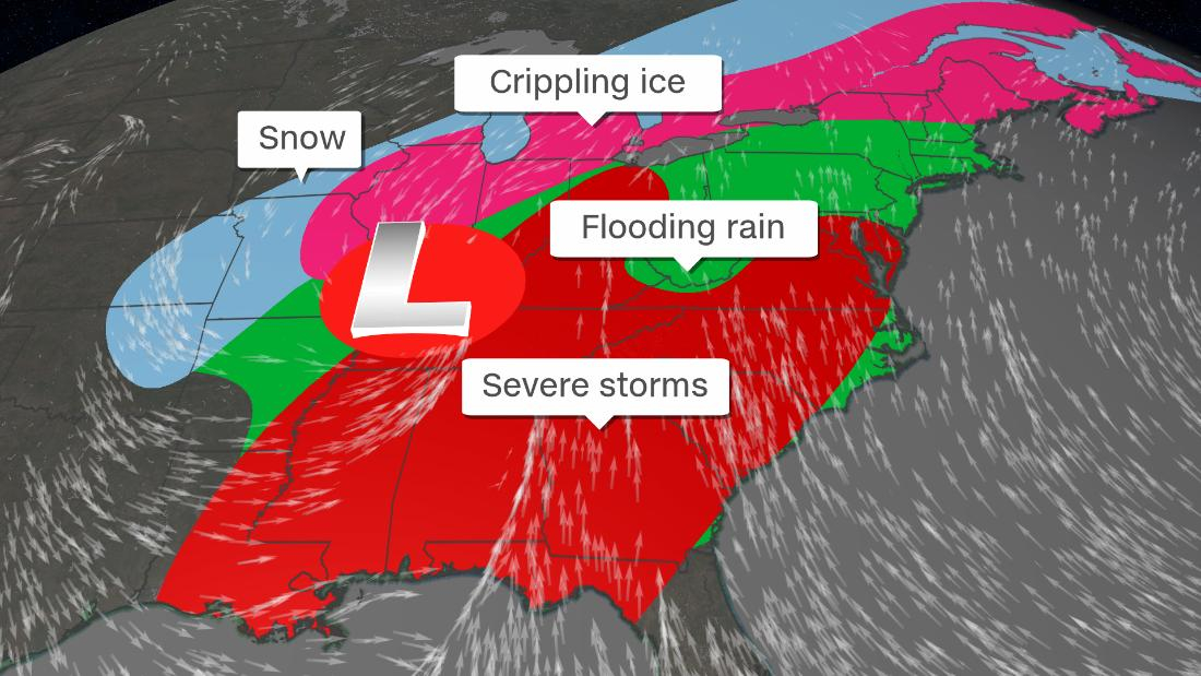 (CNN) — Una línea ya mortal de tormentas poderosas se está extendiendo sobre la mitad oriental de Estados Unidos, amenazando con vientos peligrosos y tornados en el sur y potencialmente paralizando con nieve…